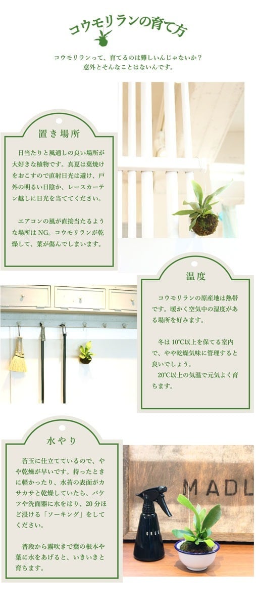吊るしてもOK!置いてもOK!いろんな楽しみ方ができる人気のコウモリランを苔玉に仕立てました!