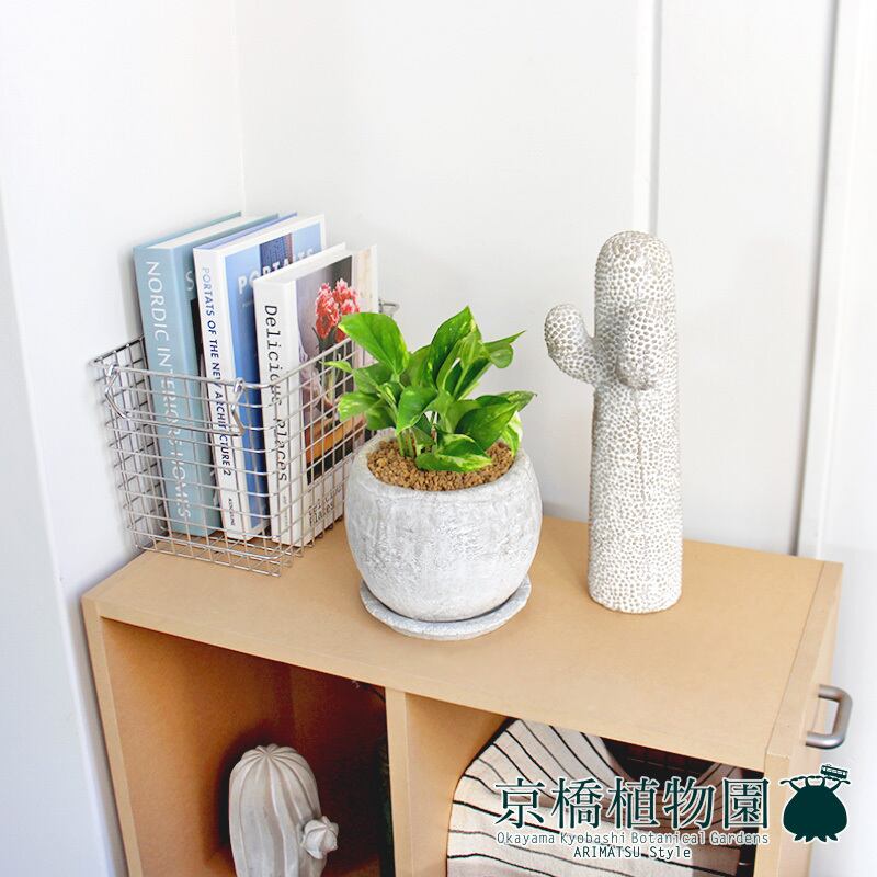 黄色のまだらに入った斑が美しく、和名は「黄金蔓(オウゴンカズラ)」とも呼ばれ、インテリアの一部としてお部屋を明るく彩ってくれます。
