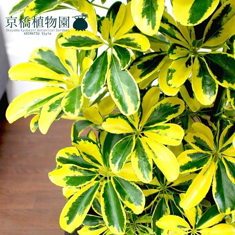 【ナチュラルバスケット鉢カバー】シェフレラ ハッピーイエロー 8号【受け皿付】