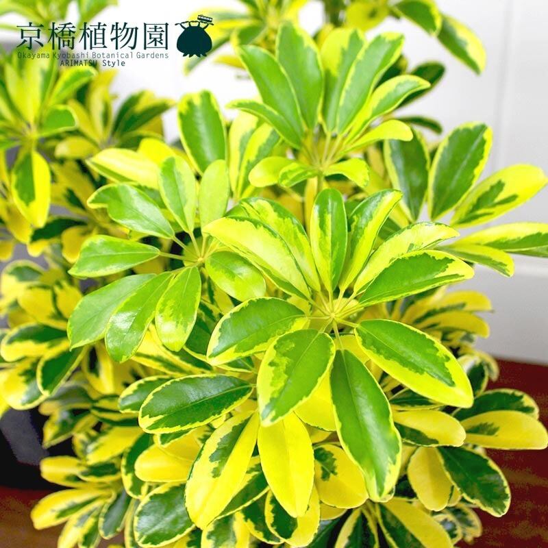 シェフレラは、8~9枚のグリーンの葉が、輪生状にかたまっているのが特徴です。