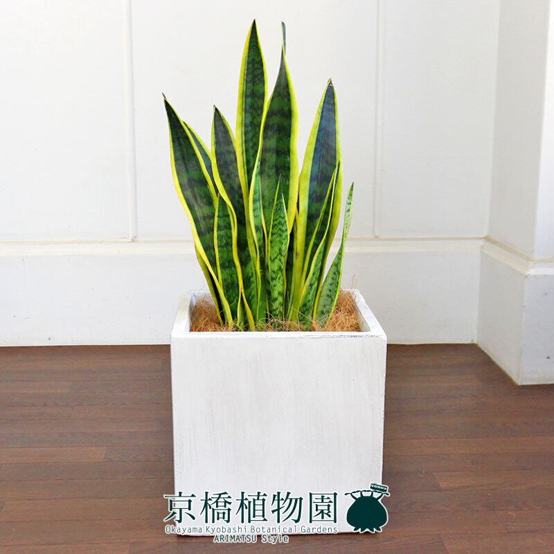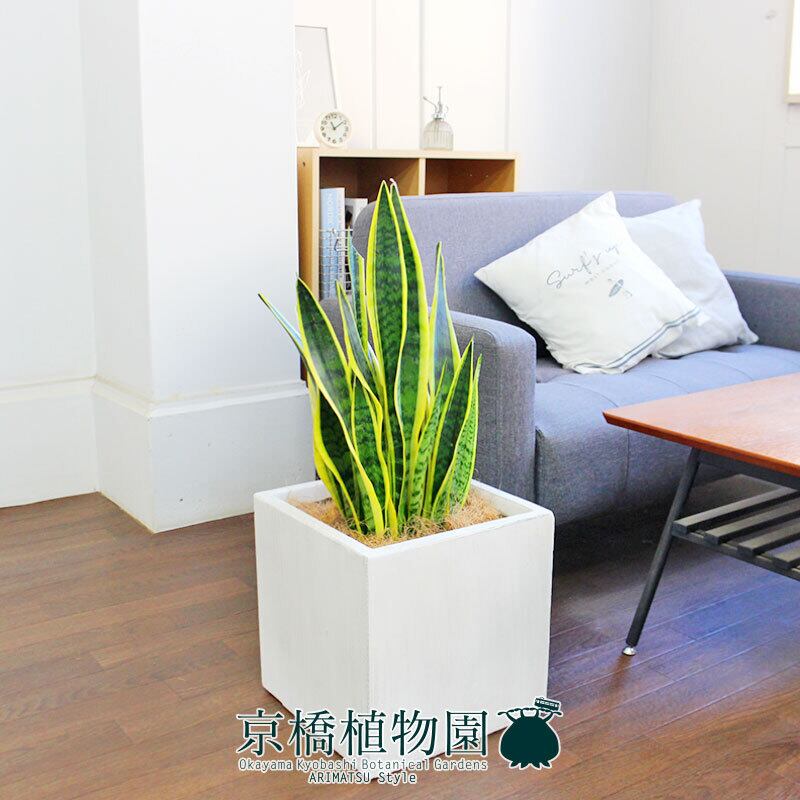 【クレイポット キューブ鉢カバー付き/ホワイト】サンスベリア・ローレンチ 7号